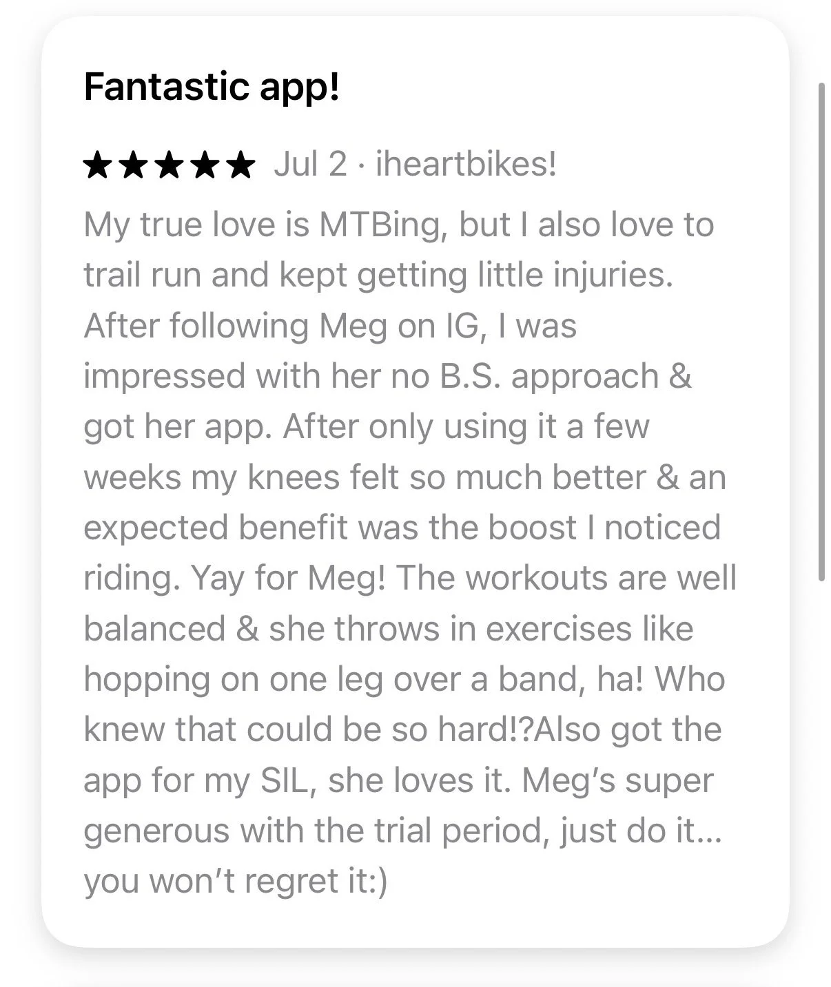 Video AND voice-guided workouts for beginner - advanced athletes.