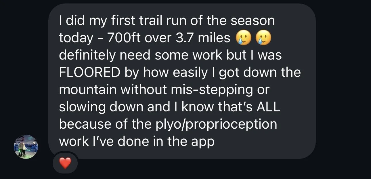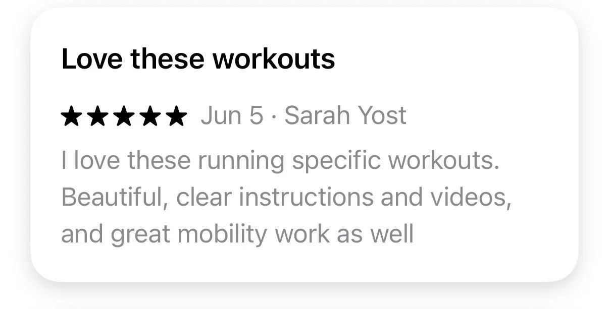 Monthly running programs to incorporate running, strength training, mobility, AND prehab.