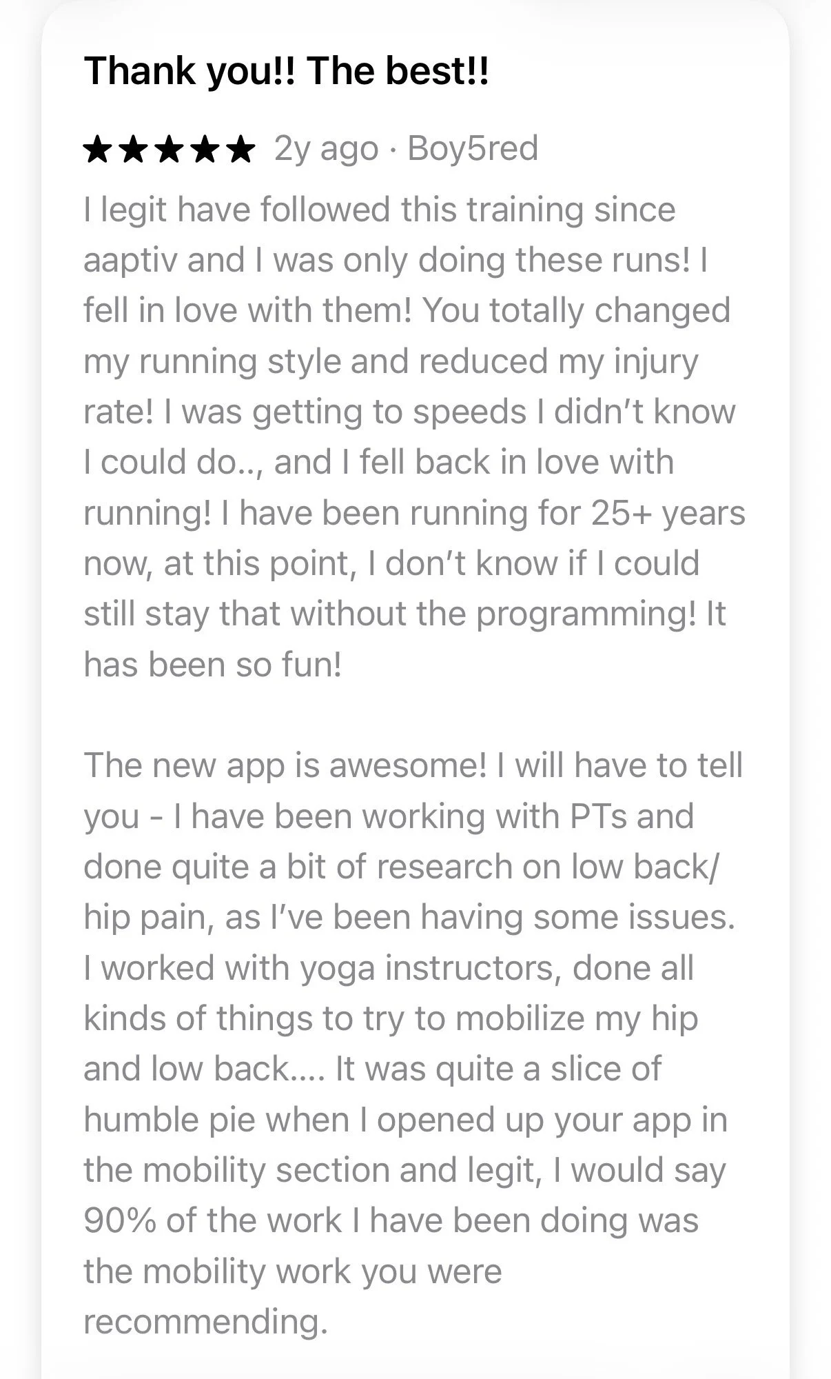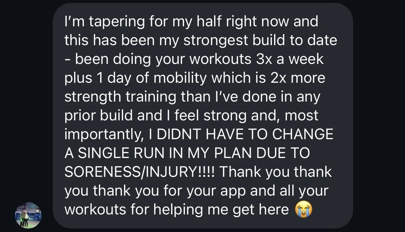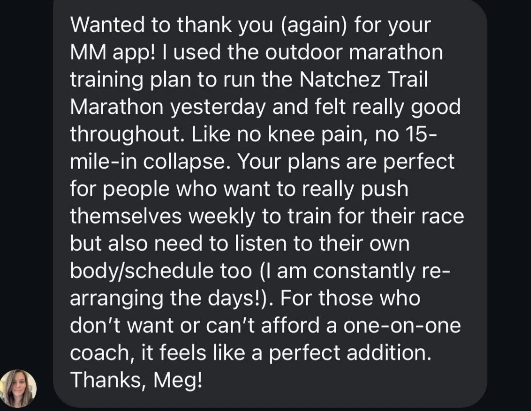 M/M is one of the only running apps with a completely, holistic, and customized approach to training: running, prehab, mobility, and strength training.